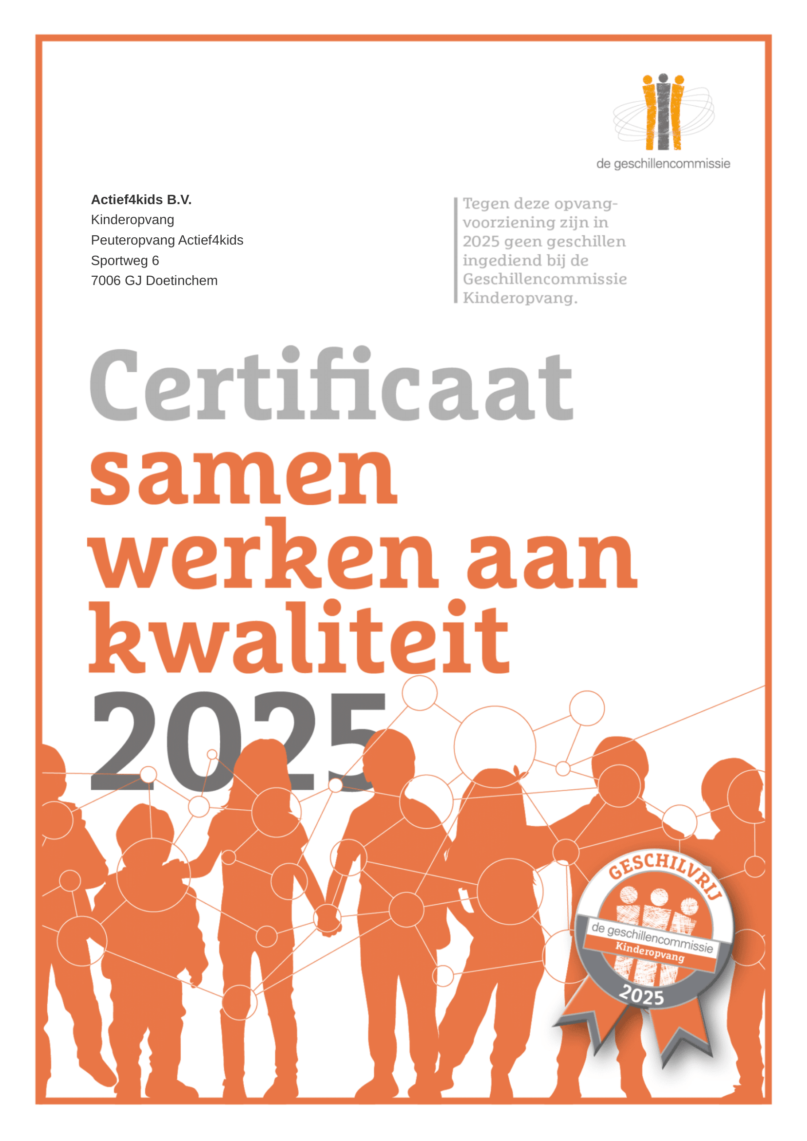 In het kader van de Wet Kinderopvang heeft Actief4Kids een interne klachtenregeling opgesteld.